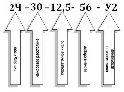Приклад умовного позначення черв'ячного редуктора 2Ч-30