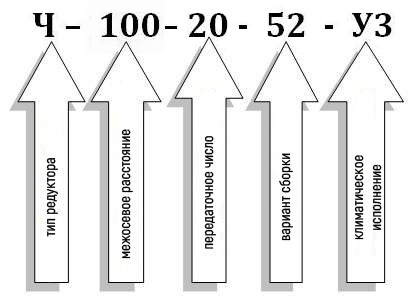 Примітка: Редуктор Ч-100 за замовчуванням укомплектований конічними вхідними та вихідними валами. Циліндричне виготовлення вхідного та/або вихідного вала обговорюються під час замовлення.