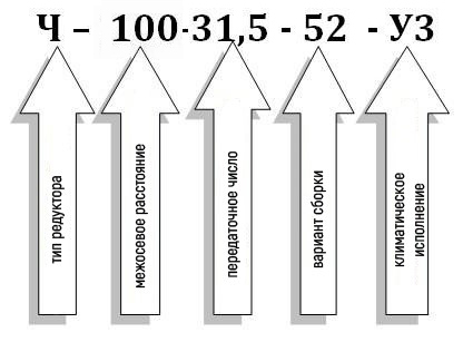 Примітка: Редуктор Ч-100 за замовчуванням укомплектований конічними вхідними та вихідними валами. Циліндричне виготовлення вхідного та/або вихідного вала обговорюються під час замовлення.