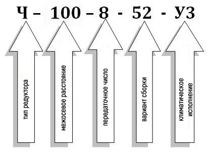 Примітка: Редуктор Ч-100 за замовчуванням укомплектований конічними вхідними та вихідними валами. Циліндричне виготовлення вхідного та/або вихідного вала обговорюються під час замовлення.