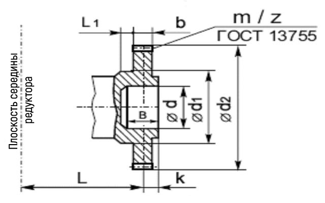 Приєднувальні розміри валу редуктора 1Ц2Н, створеного у вигляді зубчастої напівмуфти