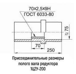 Приєднувальні розміри порожнистого валу редуктора 1Ц2У-200