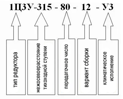 1Ц3У-315 має циліндричний тип передачі з паралельним розташуванням осей. Максимальне обертання валу на вході не повинно перевищувати 1800 об/хв. Номінальний момент, що крутить, цього пристрою становить 10000 Нм, а його маса 580 кг.