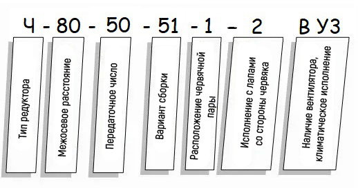 Відповідно до диктованих особливостей експлуатації редуктор Ч-80-50-51 може бути складений у різних складаннях.