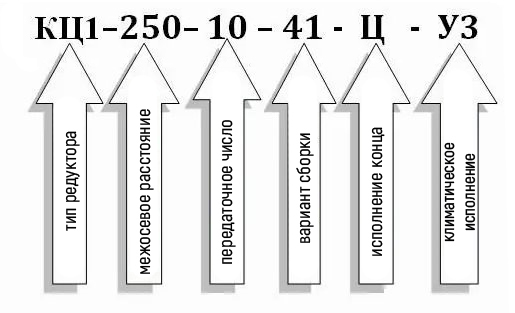 Двоступінчастий редуктор типу КЦ1-250-10 має циліндричний тип передачі. Такі пристрої встановлюють із приводами для зміни параметрів крутного моменту та частоти обертання валу.