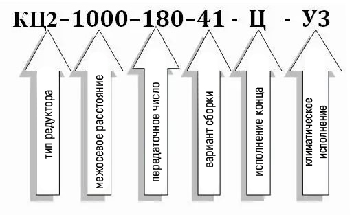 Умовне позначення при замовленні редуктора типу КЦ2-1000: