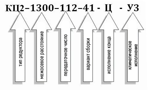 Умовне позначення під час замовлення редуктора типу КЦ2-1300: