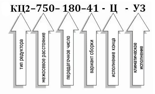 Умовне позначення редуктора типу КЦ2-750: