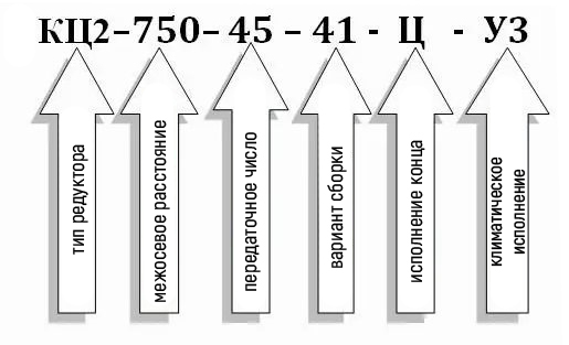 Умовне позначення редуктора типу КЦ2-750: