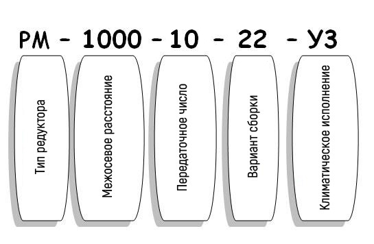 Редуктор РМ-1000-10, відповідний варіанту складання 22, має колінеарне розташування виходів паралельних валів. Кінці валів виготовлені у вигляді зубчастої муфти або її частини, також можуть бути зроблені під елементи приводу.