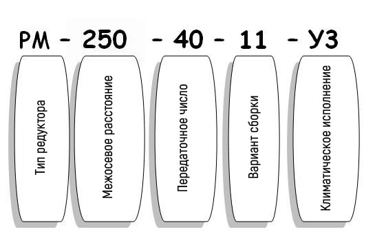 Умовні позначення редуктора РМ-250-40