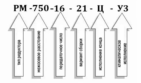 Умовне позначення редуктора РМ-750-16