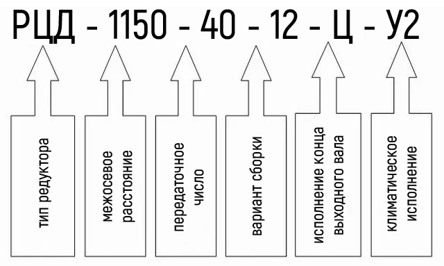 Приклад умовного позначення редуктора РЦД-1150-40