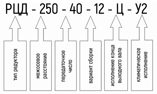 Умовні позначення редуктора РЦД-250-40