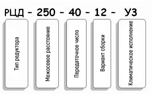 Умовні позначення редуктора РЦД-250-40