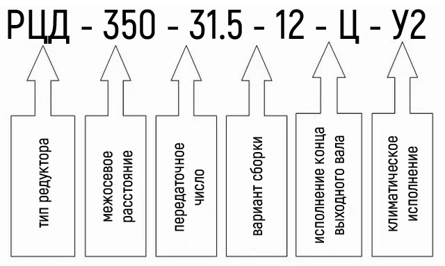 Приклад умовного позначення редуктора РЦД-350-31.5