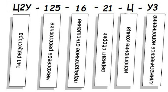До складу редуктора Ц2У-125-16-21 входять три вали - ведучий, ведений та проміжний. Така кількість обумовлена приналежністю пристрою до двоступінчастих циліндричних перетворювачів.