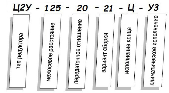 Перетворення механічних величин може здійснюватись за допомогою редуктора Ц2У-125-20-21. Пристрій позиціонується як циліндричний, горизонтальний і двоступінчастий. Це говорить про те, що до складу редуктора входять три вали - ведучий, ведений та проміжний.