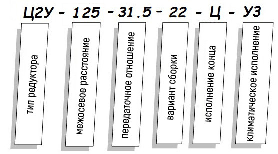 Редуктори Ц2У-125-31.5-22 належать до універсального типу пристроїв механічного принципу дії. Механізм перетворювача поміщений у чавунний або алюмінієвий корпус вузького виконання.