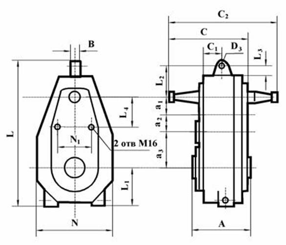 Габаритні і приєднувальні розміри редуктора Ц3ВК-125