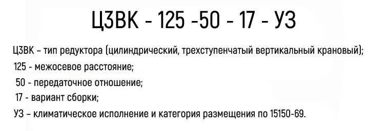 Умовне позначення редукторів Ц3ВК-125-50