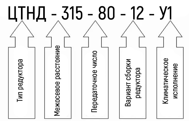 Схема умовних позначень редуктора ЦТНД-315-80