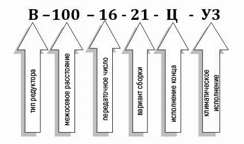 Схема умовних позначень редуктора В-100-16