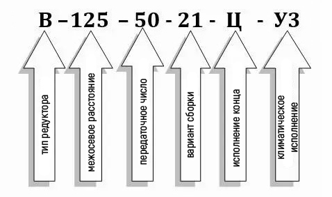 Схема умовних позначень редуктора В-125-50