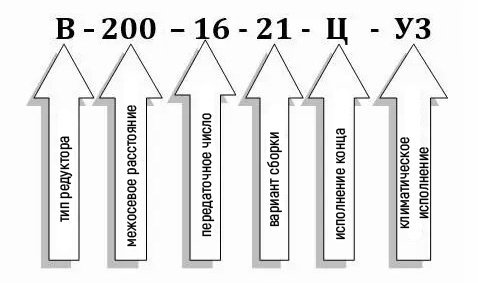 Схема умовних позначень редуктора В-200-16