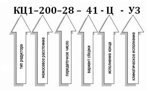 Редуктор КЦ1 відноситься до конічно-циліндричних пристроїв, що мають горизонтальне виконання. Пристрій складається з двох пар коліс: перша зі швидкохідним ступенем - має конічні колеса зі спіральними зубами, а друга з тихохідним ступенем - циліндричні колеса з косими зубами.