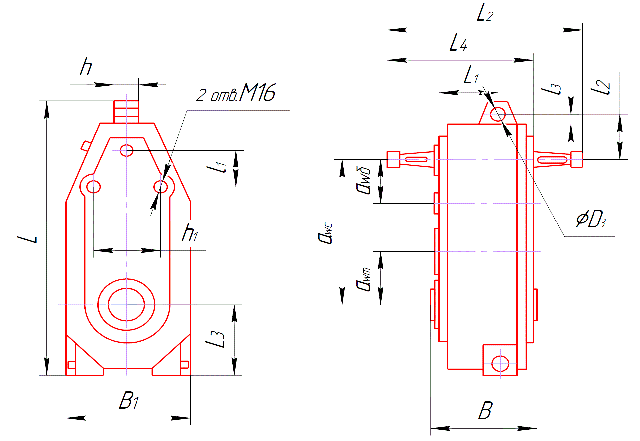 Габаритные и присоединительные размеры редуктора Ц3ВК-250